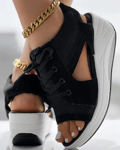 🔥Last Day Promotion 50% OFF🔥Contrast Paneled Cutout Lace-up Muffin Sandals