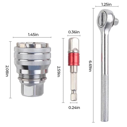 Easy to Use: This magic sleeve can beused with ratchet wrench, universal wrench, electric wrench and electric drill.It enables the wrench to twist nuts of various sizes. Compact and easy to carry.