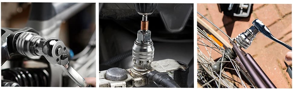 Get this universal socket, one sleeve that accommodates nuts of various sizes. No need to change the wrench or sleeve of different sizes frequently.