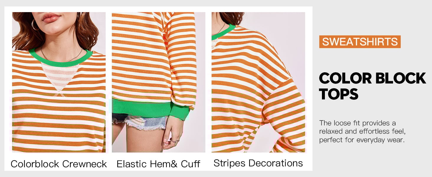 🎁Last Day Sale 49% OFF🏆️2024 Womens Stripes Color Block Sweatshirts