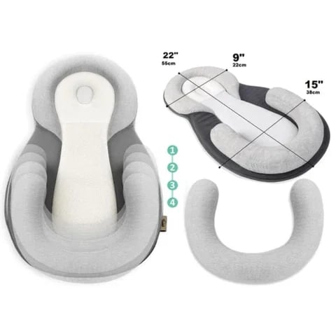 That's because the shape of the portable baby bed imitates the infant's embryo period and Mimics the shape of the female uterus. It has an ANTI-ROLLING shaping pillow to stop them spilling over into awkward positions!
